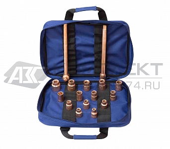 В наборе 14 омедненных головок, вороток, удлинитель, паспорт и сумка