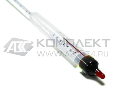 Для получения данных о температуре среды необходимо оставить ареометр погружённым в течение 10−15 минут. За это время спиртовой указатель красного цвета поднимется до актуального уровня.