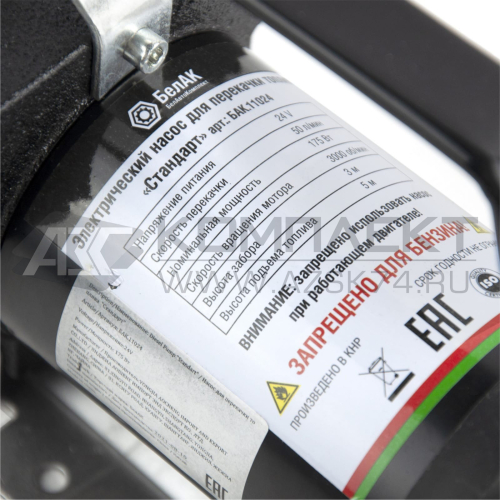 Насос для перекачки топлива БелАК «Стандарт» запрещается использовать насос вхолостую более 5 минут.При перекачке больших объёмов топлива не рекомендуется использовать данный насос непрерывно более 30 минут. Каждые пол часа необходимо делать перерывы в работе продолжительностью не менее 10 минут во избежании перегрева устройства и выхода его из строя.