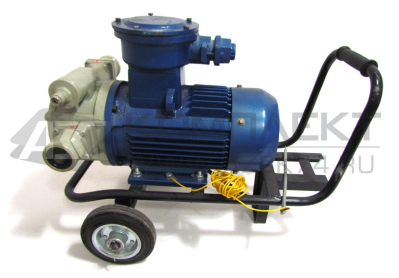 Насосный агрегат EXP-400-50 представляет собой установку с электродвигателем и вихревым насосом на раме-тележке. Данный насосный агрегат предназначен для перекачки светлых нефтепродуктов, таких как бензин, дизель и керосин.