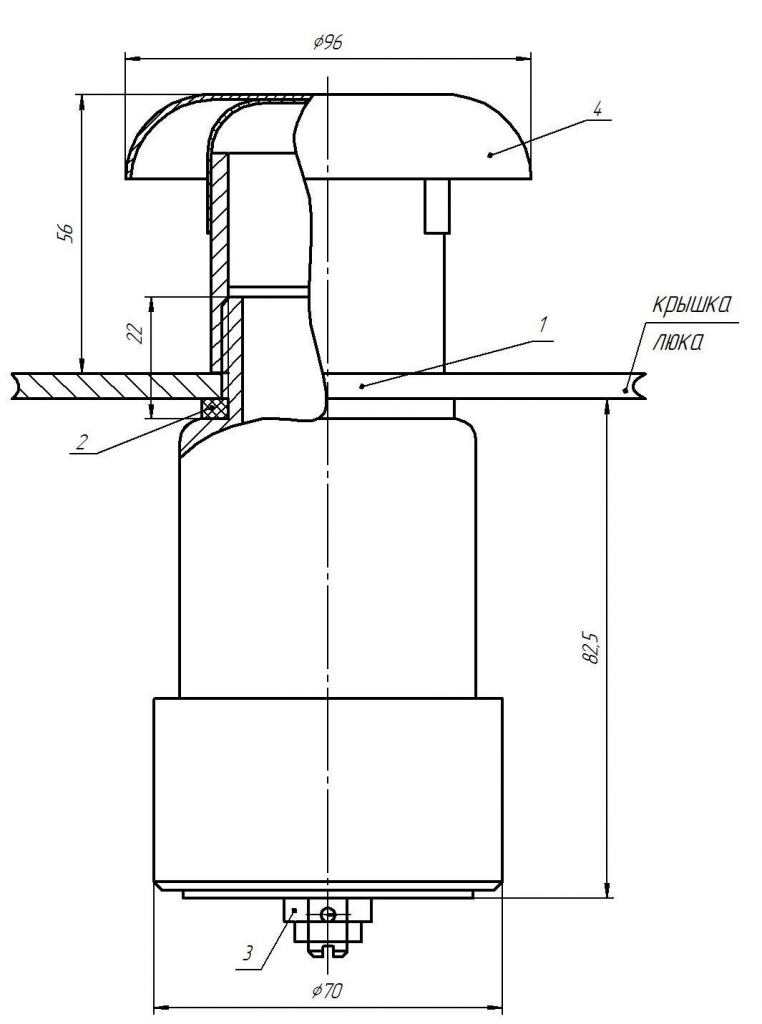 Монтаж клапана производится на крышке люка автоцистерны и осуществляется строго в вертикальном положении.