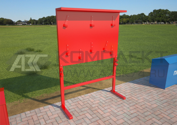 Пожарный щит предназначен для хранения первичных средств пожаротушения и пожарного инвентаря.