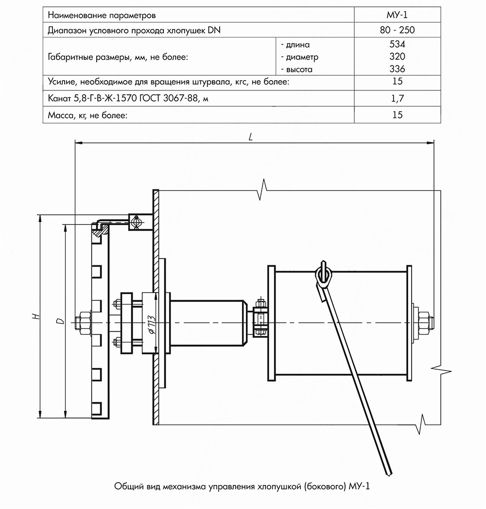 Механизм управления хлопушкой (боковой) МУ-1 предназначен для открывания крышек хлопушек с условным проходом DN 80/250 и фиксации их в открытом положении в вертикальных цилиндрических резервуарах для нефтепродуктов нефтебаз и АЗС.