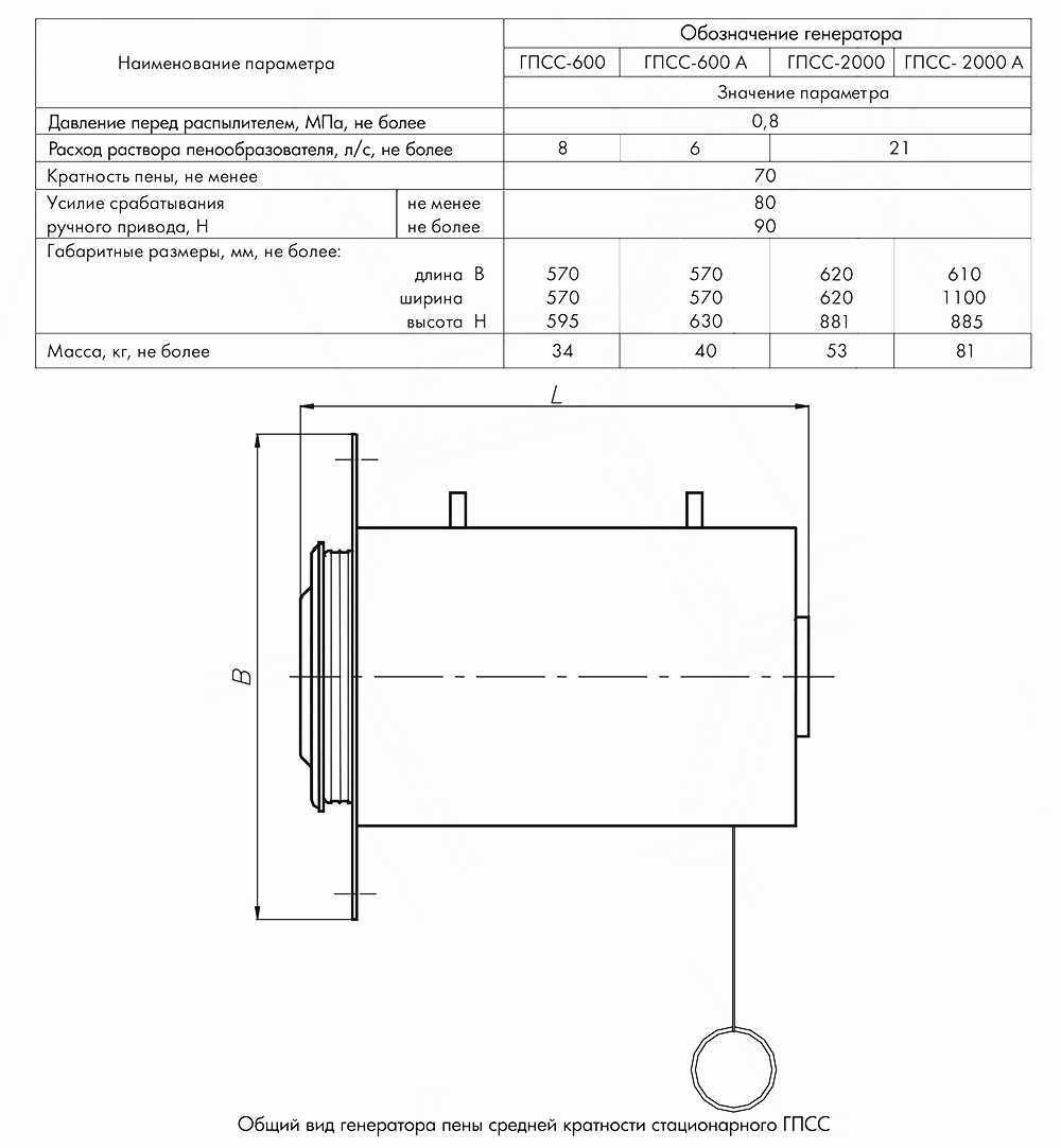 Пеногенератор ГПСС-600 соответствуют климатическому исполнению У категории размещения 1 по ГОСТ 15150-69.