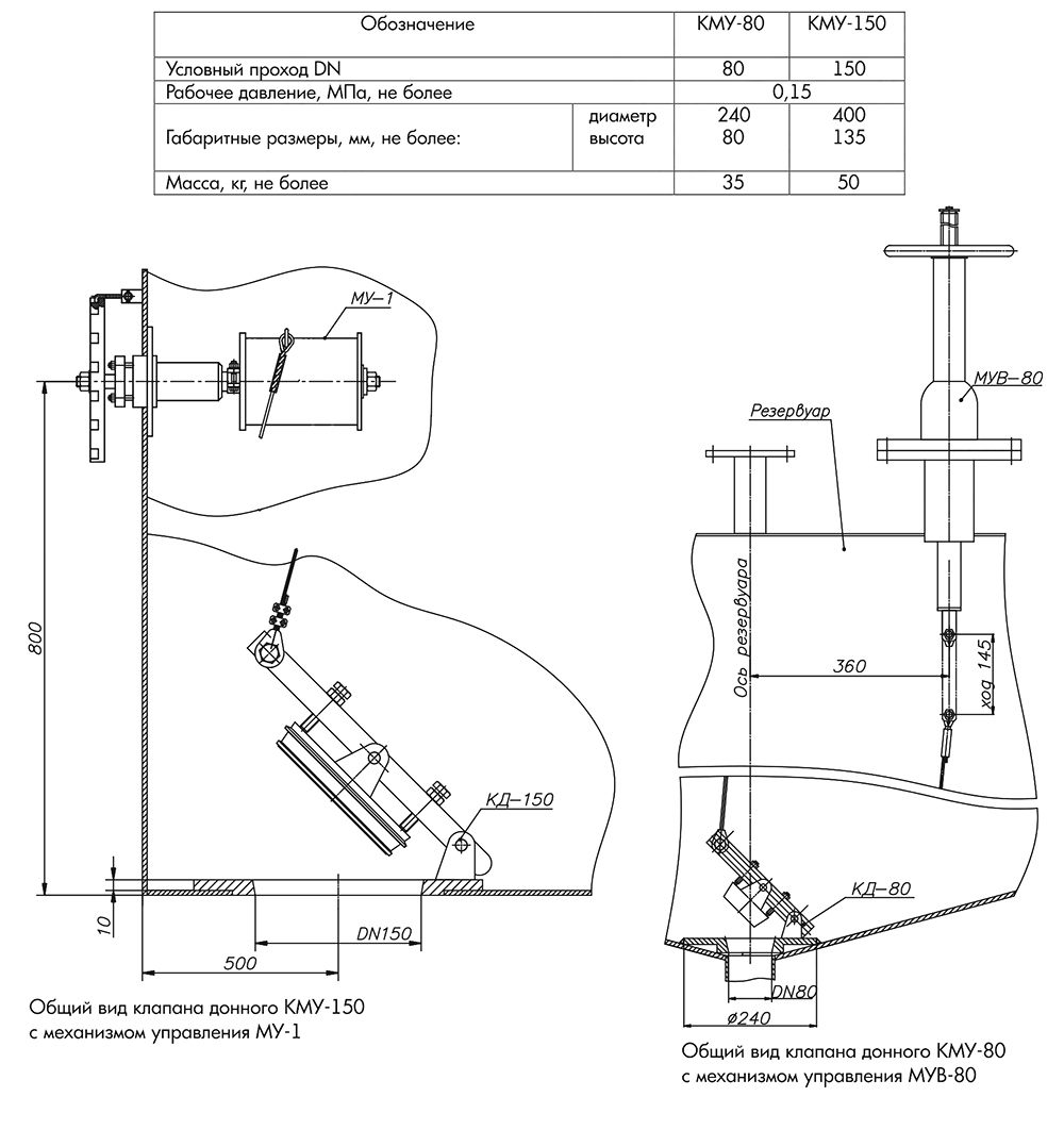 В комплект поставки входят клапан донный и механизм управления МУ-1 или МУВ-80.