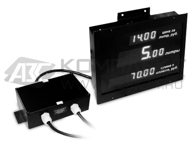 Устройство имеет светодиодную трехстрочную (по 7-м разрядов в строке) индикацию с отображением количества, цены и стоимости топлива.